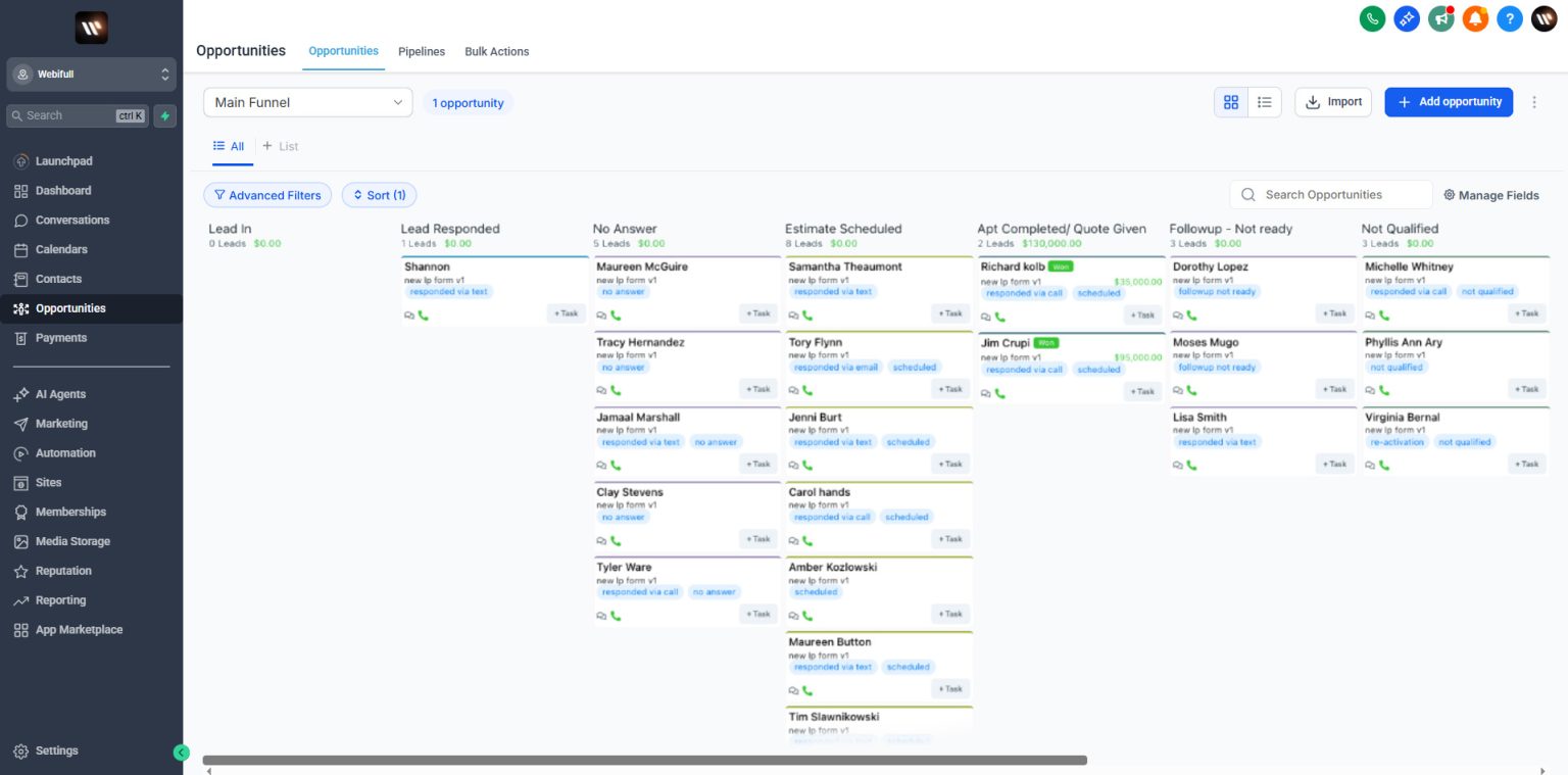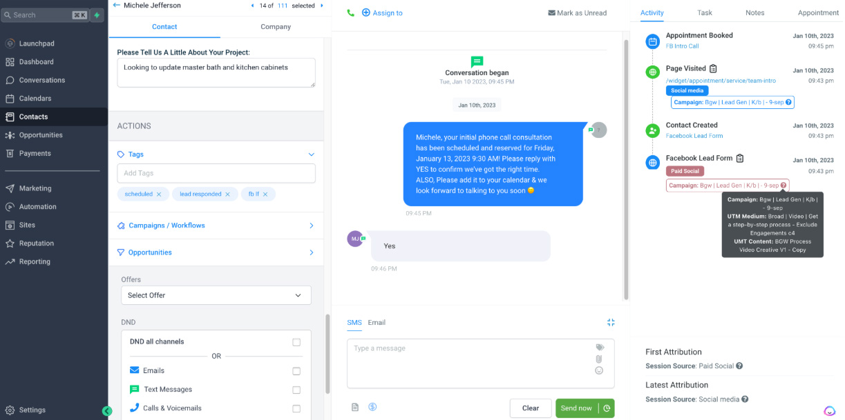 Whether it’s Facebook Messenger, Google My Business, your website form, Google Ads, Facebook Ads, or even a newspaper ad — everything is tracked in one place.